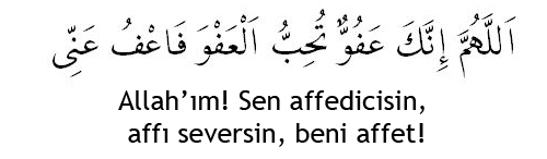 Manası: "ALLAHIM! Muhakkak sen affedicisin, affetmeyi seversin, beni de affet.’’